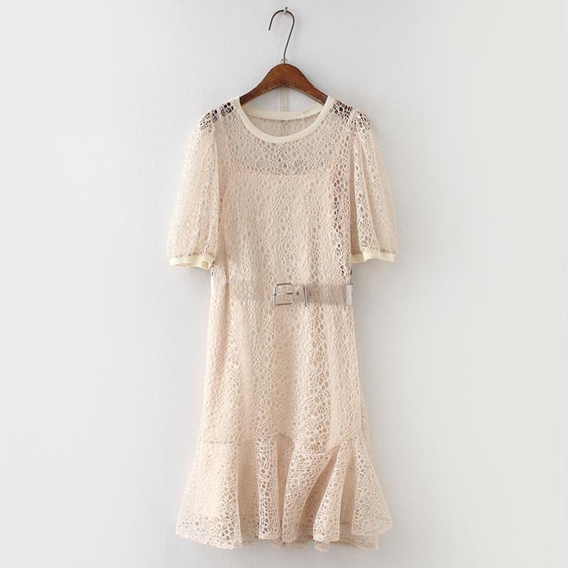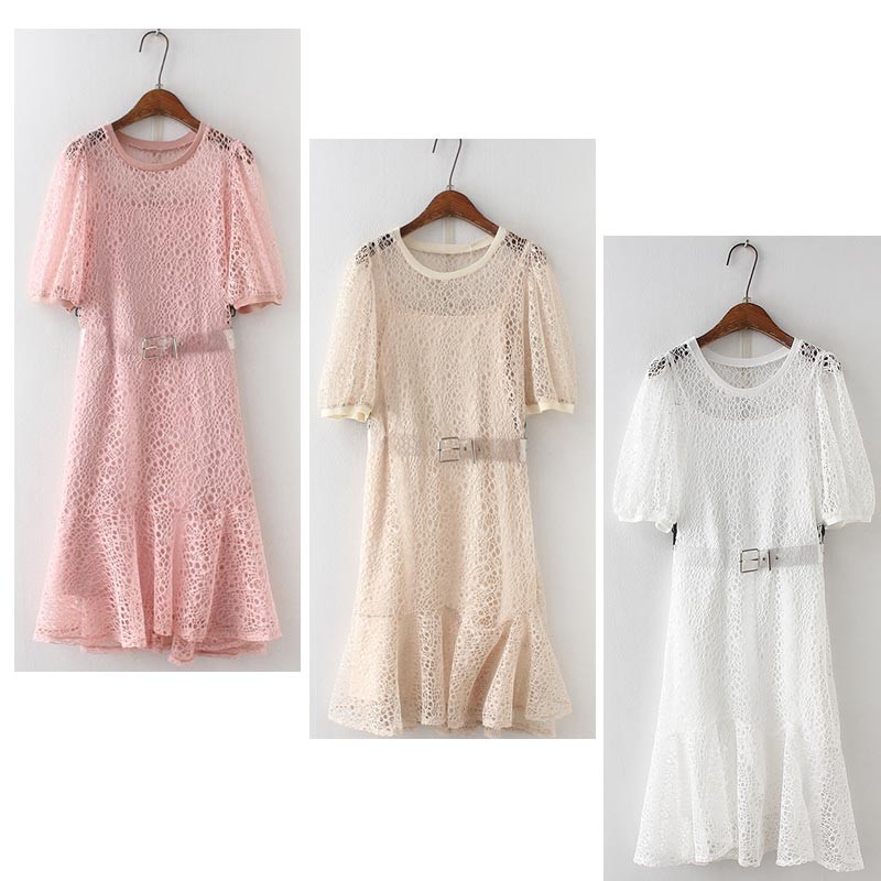 バブルのような刺繍柄のメッシュ素材ワンピース・インナードレス付きです♪