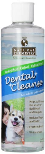 -. Binding : Misc. -. Feature : Oral health and hygiene are as important for your pet as they are for you. Crystal clear, tasteless & odorless Dental Cleanse promotes good oral hygiene which has been proven to be beneficial to your pet's overall health and longevity. / Dental Cleanse is free of sweeteners such as Sorbitol and Xylitol, and does not contain unhealthy artificial colors or dyes. You'll clearly see the difference! / Use Dental Cleanse daily in your pet's water bowl to: Help eliminate the source of bad breath and gingivitis. Reduce the build-up of plaque & tartar. / Maintain healthy gums. Freshen breath. Whiten teeth. / help make professional cleanings faster, easier and more gentle. Available Size: 8-Ounce Bottel -. Label : Natural Chemistry -. Manufacturer : Natural Chemistry -. MPN : 8421142 -. PackageQuantity : 1 -. PartNumber : 8421142 -. ProductGroup : Pet Products -. ProductTypeName : PET_SUPPLIES -. Publisher : Natural Chemistry -. Studio : Natural Chemistry -. Title : Natural Chemistry Dental Cleanse Oral Hygiene Treatment for Dogs 16-Ounce by Natural Chemistry