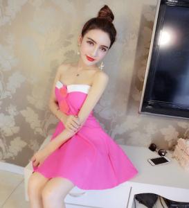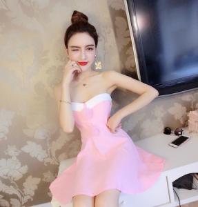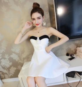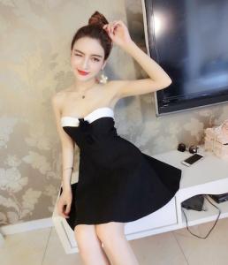 ベアワンピース ファーポンポン セクシー フレアスカート バイカラー ミニ丈ワンピース プチプラ ドレス 膝上 ナイトパーティー