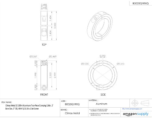 Climax Metal 2C-200-A Aluminum Two-Piece Clamping Collar, 2" Bore Size, 3" OD, With 5/16-24 x 1 Set Screw