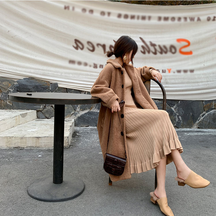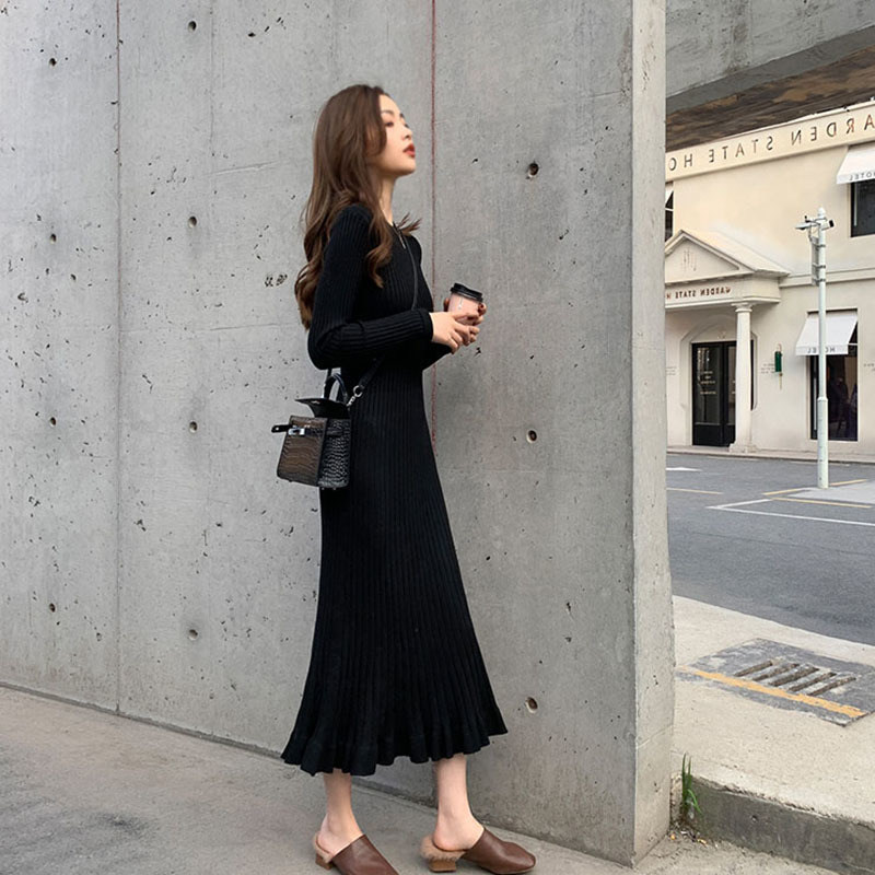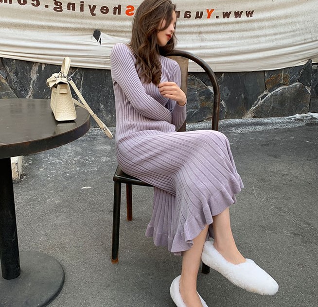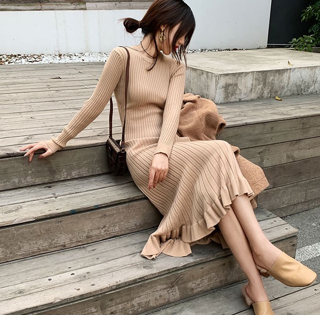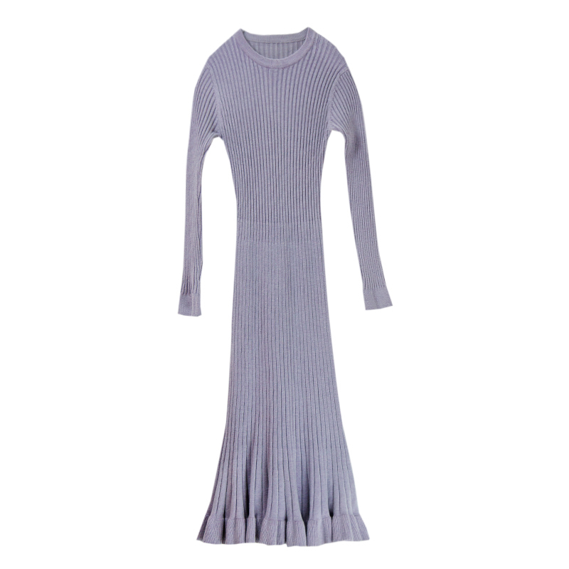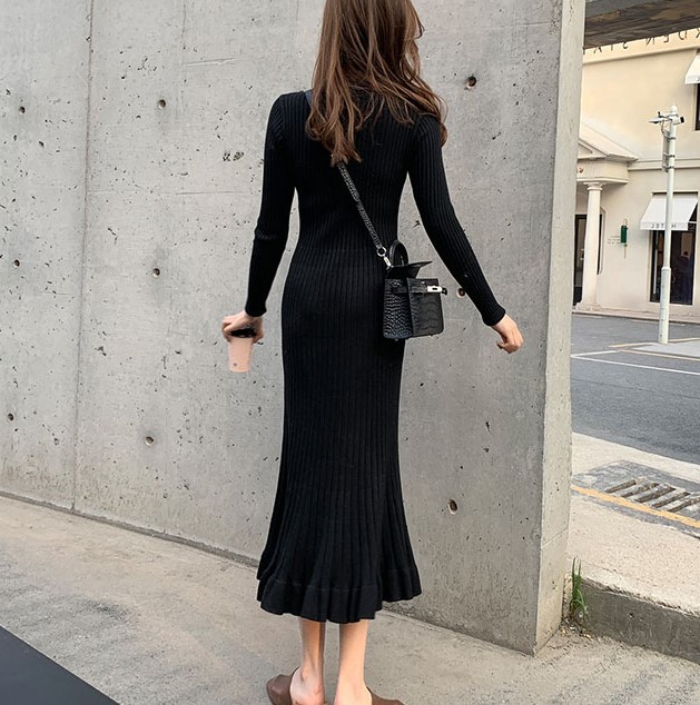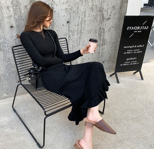 フィット感のあるリブニットのロングワンピース。