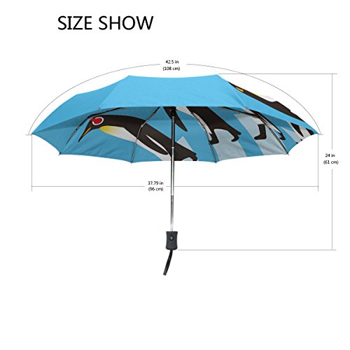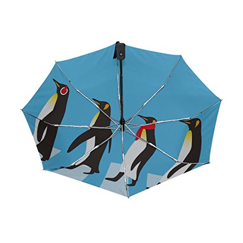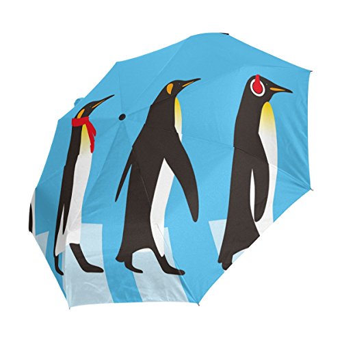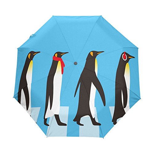 materials: made of 100% polyester pongee waterproof fabric. Weight: it is lightweight, 393g. Single-sided printing. Style: automatic open and close umbrella; foldable mini travel umbrella. Can be used on rainy and snowy day. Suitable for boys, girls, women and man. Feature: Light weight, small, portable. This King Penguin Walking Road folding umbrella is also a perfect Christmas gift, new year gift, and back to school gift. 0