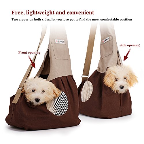 -. Title : SIAYI Hands Free Traveling Dog Cat Sling Carrier Purse Portable Pet Carrier Sling with Built-in Hook for 6-12 Lbs. Pets, Brown, Green, Pink, Blue