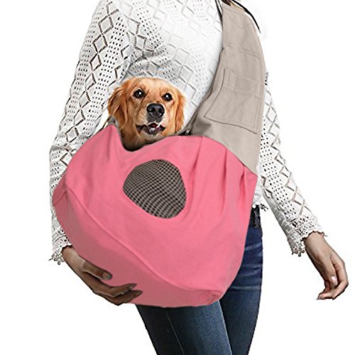-. Feature : HANDS FREE DOG SLING CARRIER: Release your hands from riding, walking, padded adjustable strap helps you choose the right length, you won't feel tired after carrying, not even hurt your shoulder / ABSOLUTELY CONTROL: Built-in hook inside, prevents your pet from suddenly jumping out, ensure safety of your pet and passers-by / WELL MADE CRAFT: Canvas fabric material for add durability and comfort, fine stitching and classic messenger style, durable and long lasting / IMPROVE INTIMATE FEELING: When you stay your baby pet within inch, helps to create a closeness feeling, suits for pets between 6 to 12 lbs. / MULTIPLE-USES CAT DOG CARRIER: Spacious space is good for carrying your pet and other stuffs, such as water, towel and whatever you need in outdoor activities