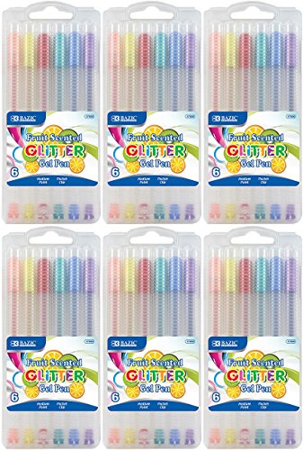 6 Pk. BAZIC 6 Fruit Scented Glitter Color Gel Pen with Case - Total 36 Pens