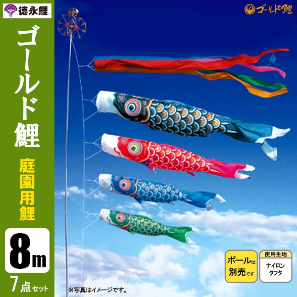 | ゴールド鯉 庭園用大型鯉のぼり ポール別売り | 7m鯉3匹 7m鯉4匹 7m鯉5匹 | 8m鯉3匹 8m鯉4匹 8m鯉5匹 | 9m鯉3匹 9m鯉4匹 9m鯉5匹 | 10m鯉3匹 10m鯉4匹 10m鯉5匹 |