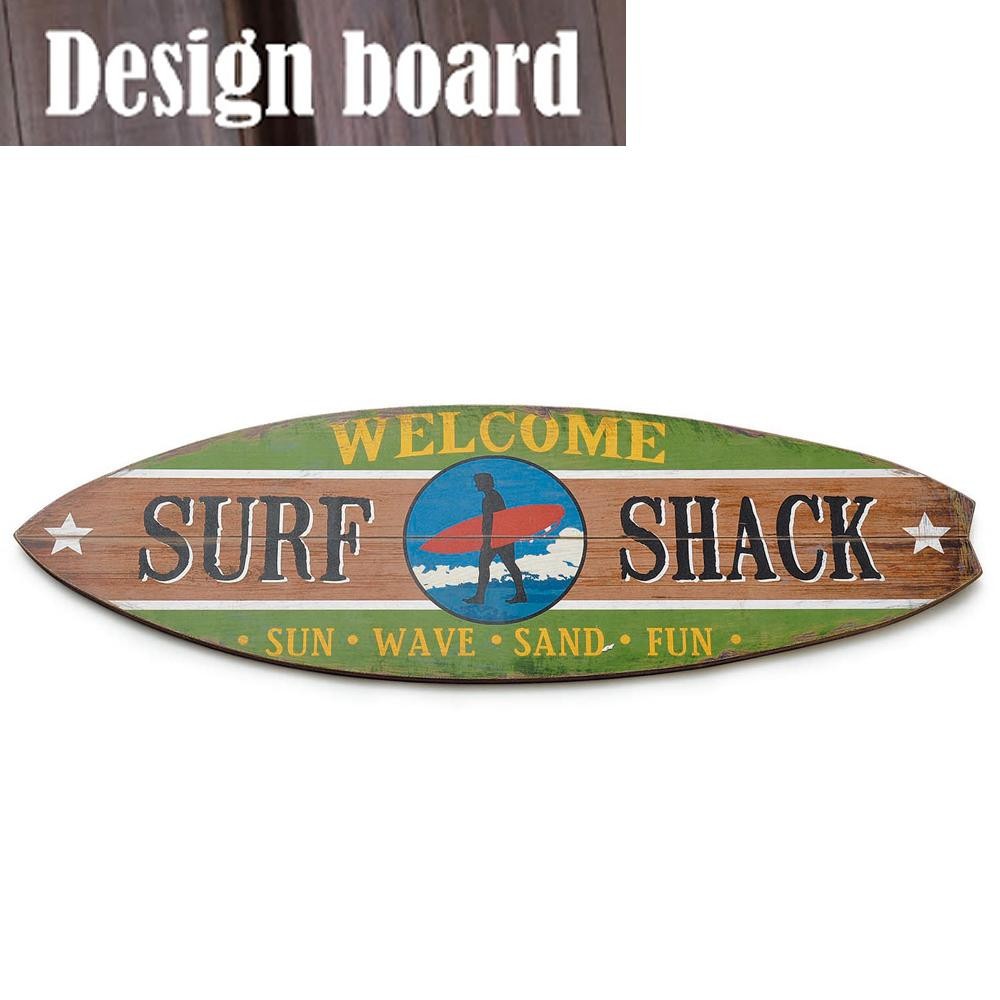 サーフィン好きな方にぴったり!!アンティークな雰囲気のデザインボードです。裏に金属製のフックが付いています。