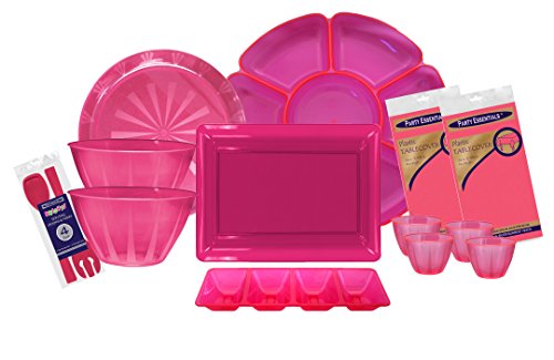 - 16-piece hard plastic neon pink party serveware kit makes planning a bachelorette party a breeze and is colorful with or without backlight
