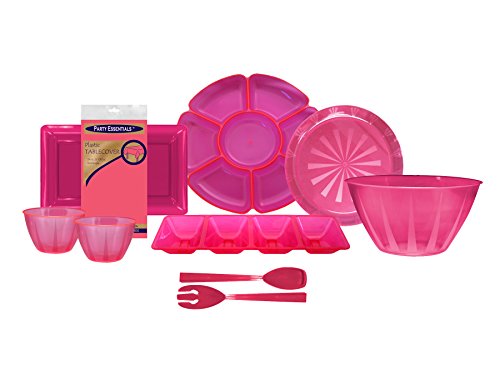 Party Essentials Hard Plastic Bachelorette Party Serveware Kit; Bowls, Trays, Utensils, 16-Piece, Neon Pink