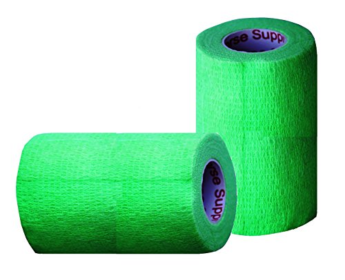 Self-adherent bandaging tape, no clips or pins needed and will not stick to hair or skin.