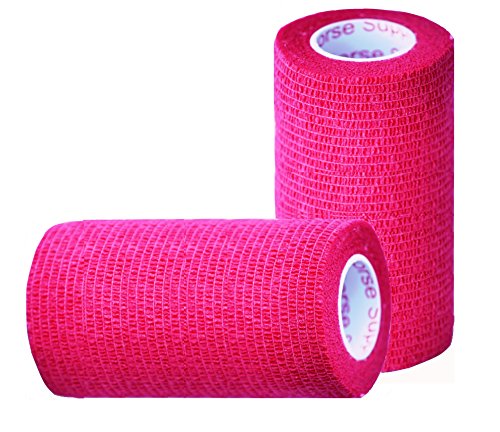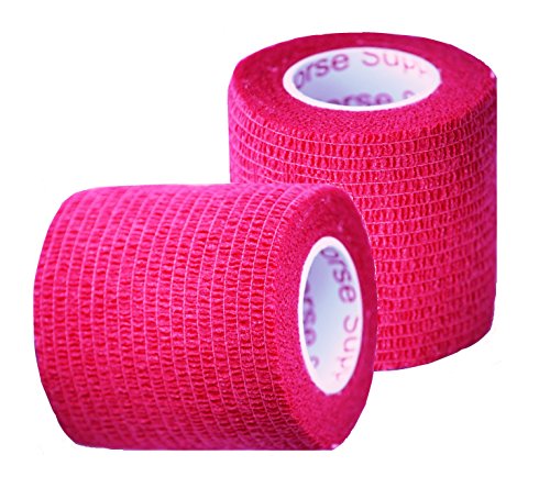 Prairie Horse Supply Vet Wrap bandages are known around the world as the preferred self-adherent bandaging tape for horses. It is a must have supply, stock up with some fun new colors. It is easy to cut or tear, and a wonderful all-around medical wrap. These elastic bandages are strong and provide excellent support. The bandage applies pressure to inhibit bleeding. It is also flexible enough and when used properly with padding it will not cut off circulation. One of the most exciting features is that it adheres to itself so no clips or fasteners are needed. 2", 3" or 4" Wide x 5 yards Long when stretched. Inner roll is clearly marked with the Prairie Horse Supply TrademarkFeature