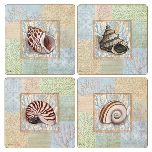 CoasterStone AS1975 Absorbent Coasters, 4-1/4-Inch, "Oceanic Shell Collage", Set of 4