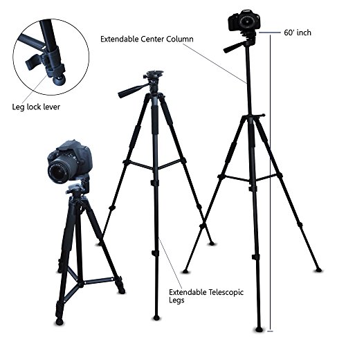 Studio : Xtech Canon CASE and TRIPOD Kit Publisher : Xtech Canon CASE and TRIPOD Kit Binding : Electronics Product Description Includes is the Premium Well Padded Camera CASE / BAG and Full Size 60" inch TRIPOD Accessories KIT, the Ideal Traveling Accessories for Canon EOS Rebel T6i T6S T5i T5 T4i T3i T3 T2i SL1 EOS 70D 60D 7D 6D 5D 5DS, 5DS R, 7D Mark II 8000D 760D 750D 700D 650D 600D 550D 1200D 1100D 100D EOS M, EOS M3, EOS M2, T1i XTi XT SL1 XSi 5D Mark II, 5D Mark III, 5DS R, 5DS DSLR Cameras. The KIT includes a Well Padded Camera CASE /BAG with Zippered Pockets and customized interior, designed to fit a Camera with Lenses and other commonly used accessories. Case Dimensions: 12 ½" Width x 6 ½" Depth x 7 ¼" Height. Additionally included in the Kit is a Full Size DURABLE 60" inch Tripod with 3-Way Pan-Head, Bubble level indicator, 3 Section aluminum alloy lock in legs that folds back into 22.5" inches. The Tripod is lightweight and includes a Backpack style Carrying Bag Making it an Ideal Camera Accessory to travel with. In addition the Kit includes a Memory Card Wallet Case Holder that holds Memory Cards separately, a convenient way to be able to identify each Memory Card individually 2 Screen Protectors Mini Table Tripod a Lens Cap Keeper a convenient item that prevents losing a Lens Cap a Deluxe Cleaning Kit and a HeroFiber® Ultra gentle cleaning cloth designed for cleaning electronics and accessories. 0