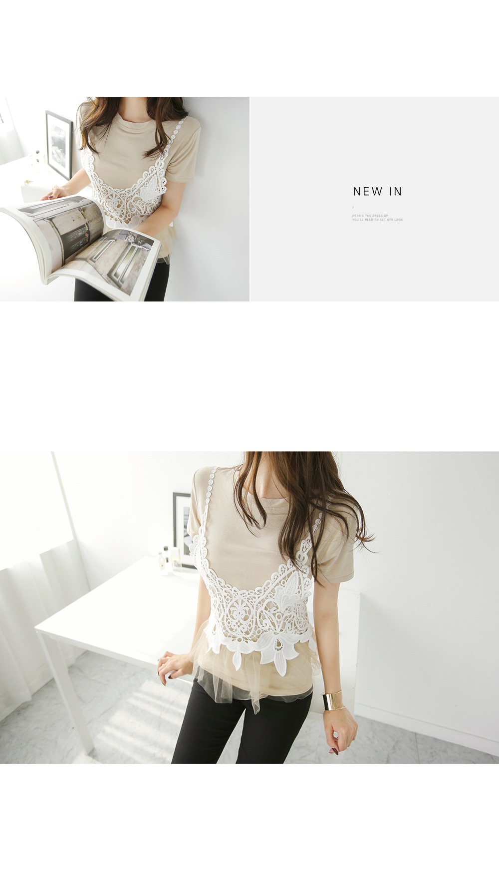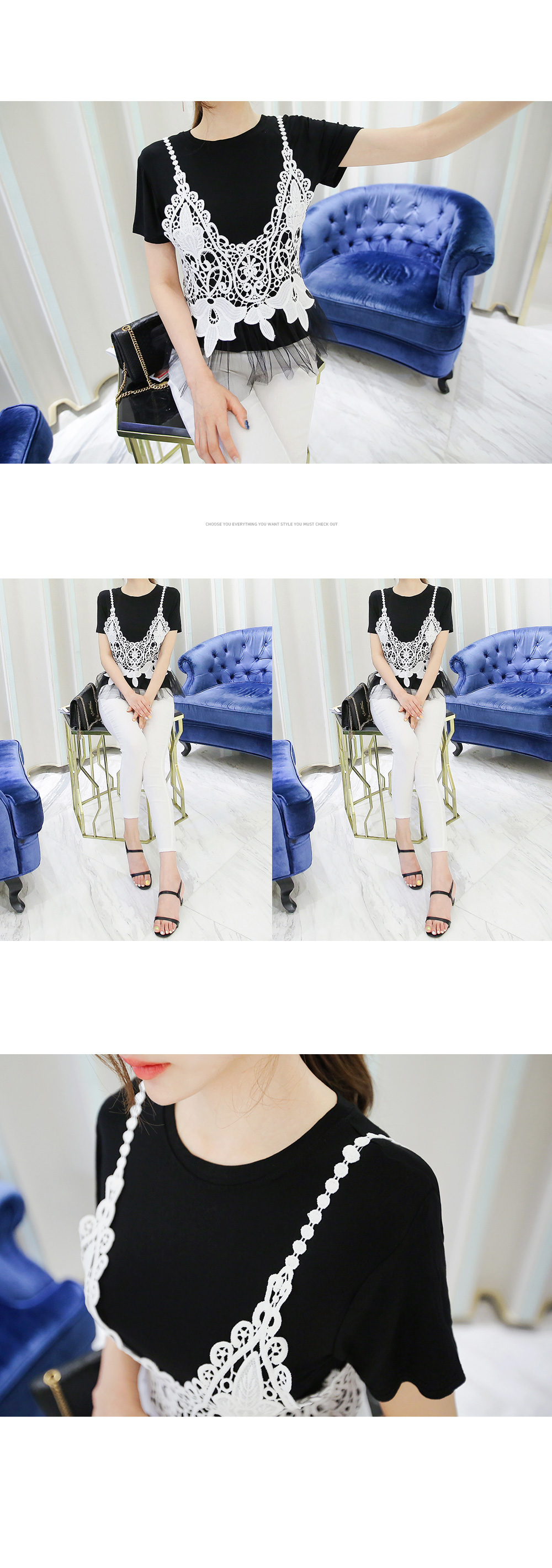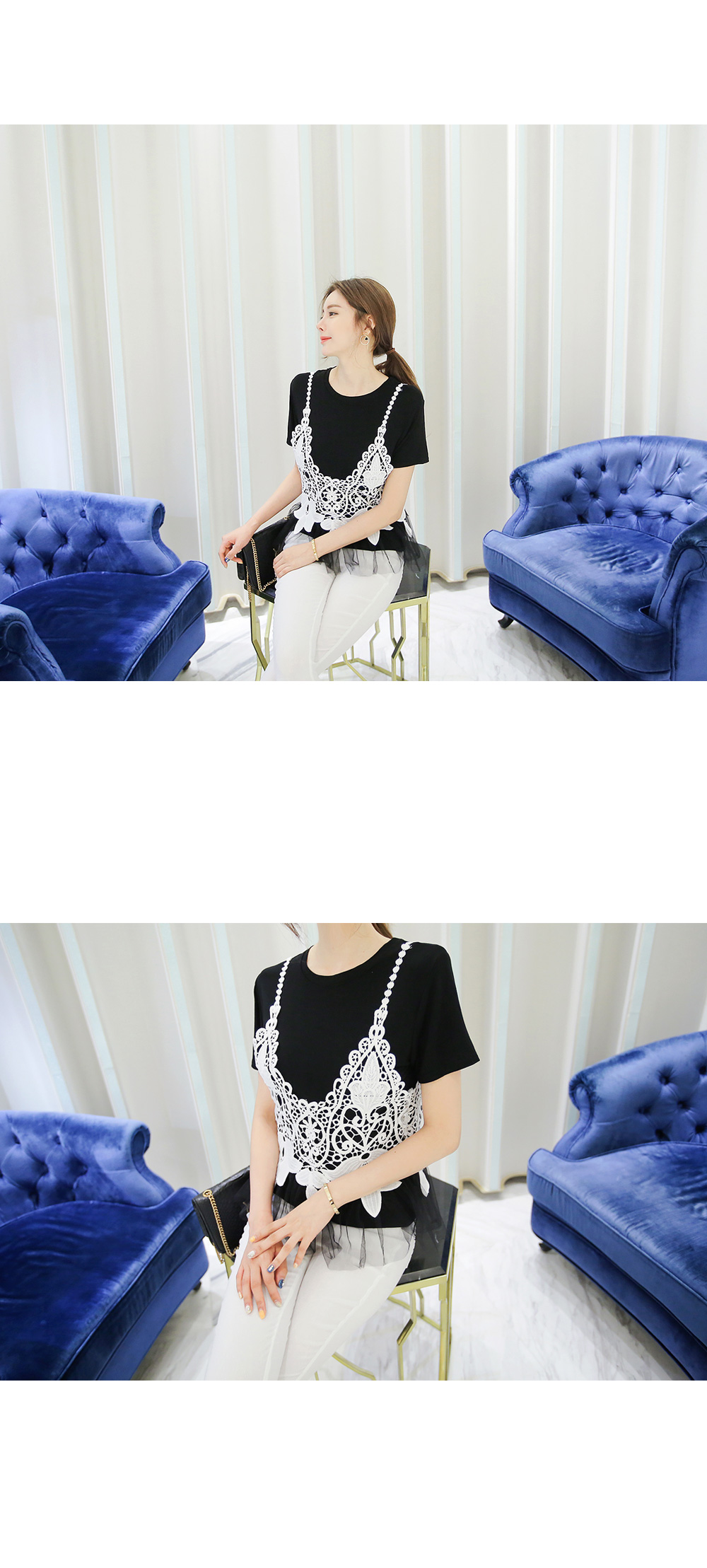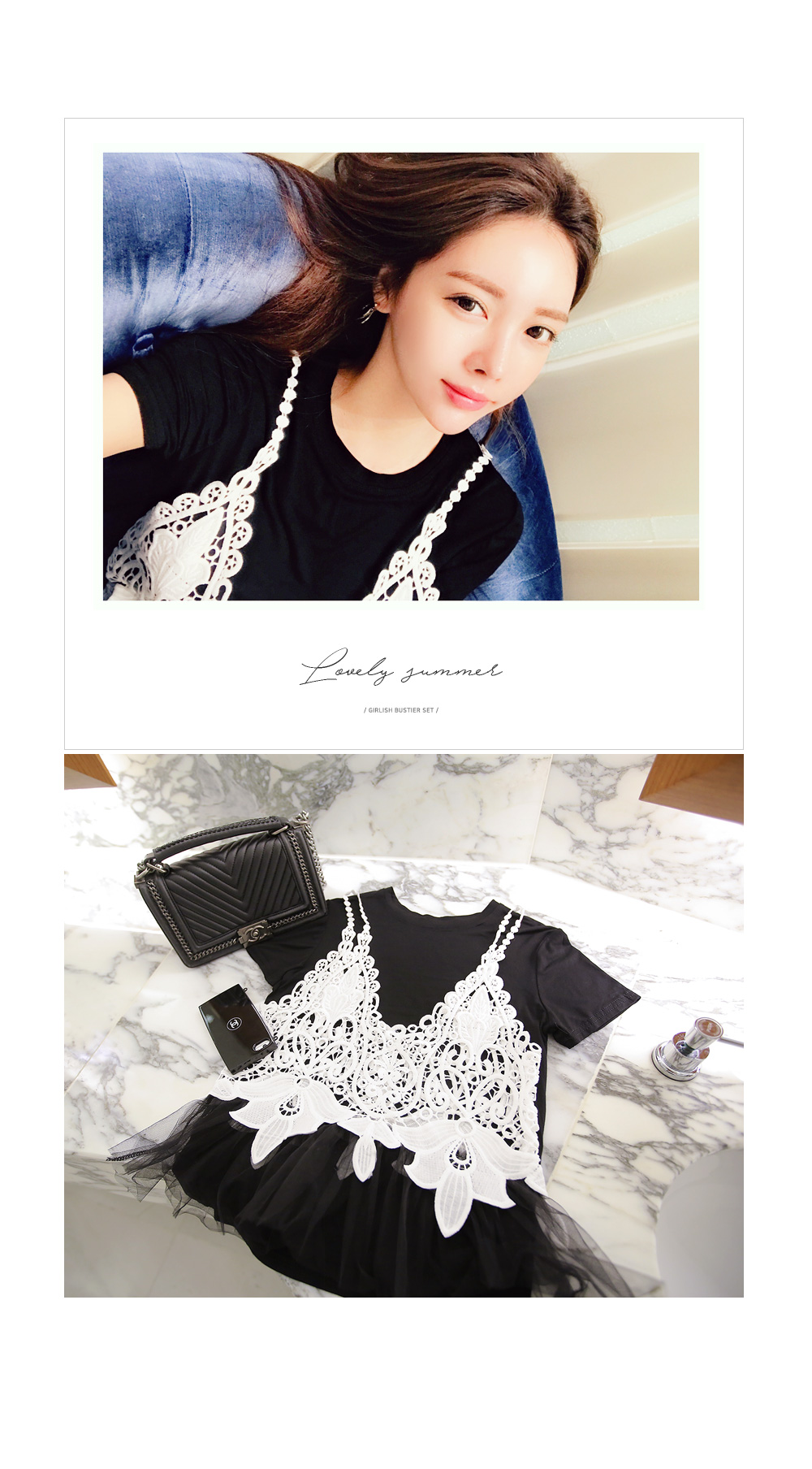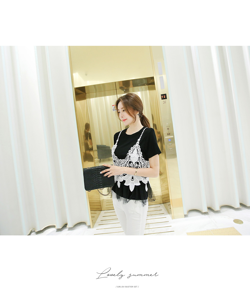 뷔스티에와 티셔츠 가 함께 구성된 세트 아이템 소개해 드려요.