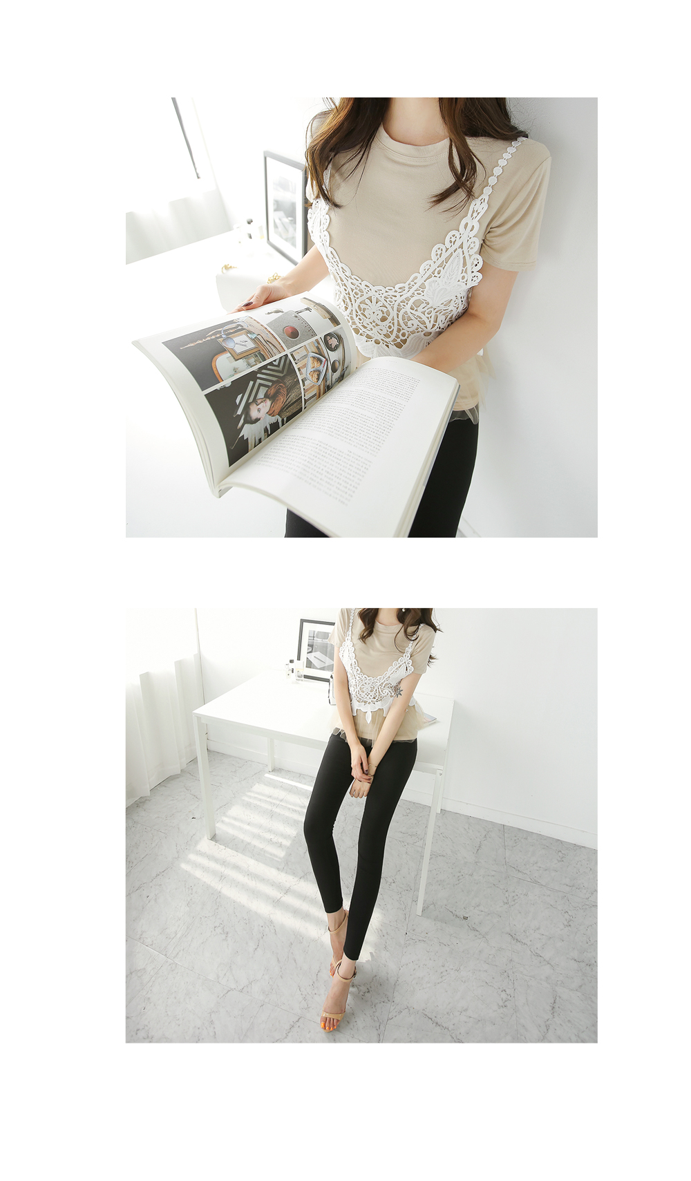 기본라운드 티셔츠가 세트상품으로 따로따로 활용할수 있어 더욱 실용적이에요.