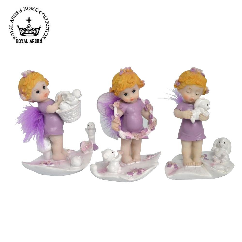 愛らしい表情としぐさがキュートなベビーフェアリーたち。お部屋に飾ると癒されます♪ 製造国:中国 素材・材質:樹脂 商品サイズ:W8×D6×H10cm ※サプライヤー直送品 ご注文後5~6営業日後の出荷となります【商品名】ロイヤルアーデン オブジェ フェアリー 3Pセット パープル 64194