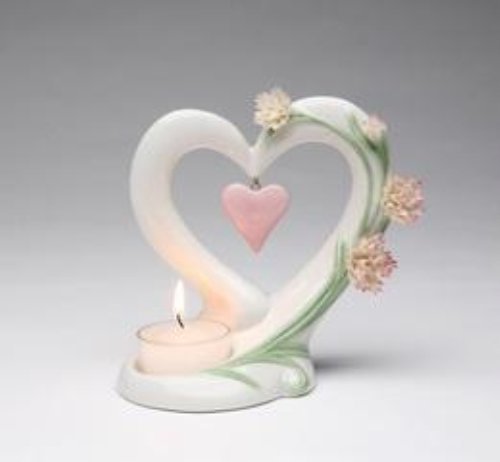 Cosmos 10431 Fine Porcelain Carnation Heart Tea Light Holder, 5-Inch