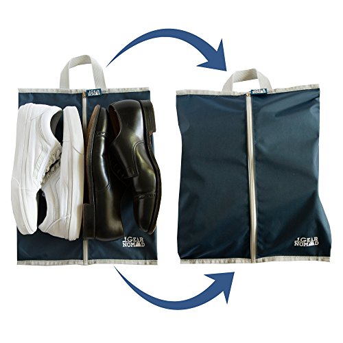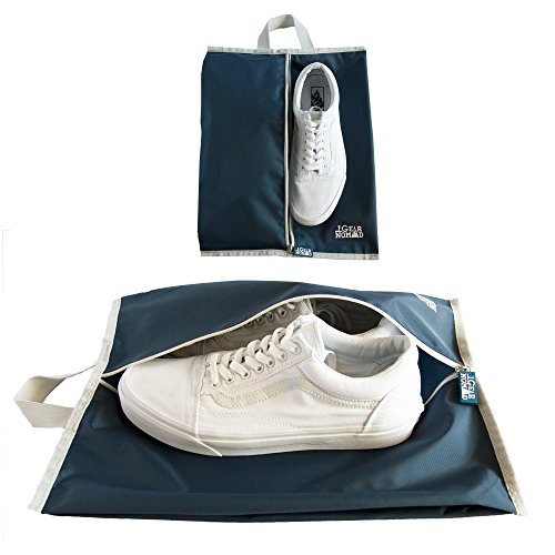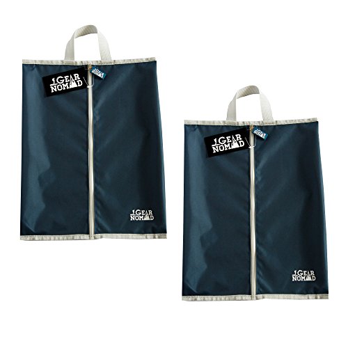 -. Brand : GearNomad -. ClothingSize : One Size -. Color : Blue / Grey -. Department : unisex-adult -. EAN : 0642213995690 -. Feature : Zipper cover waterproof portable shoe storage keeps dirty footwear away from clothes when traveling. / Also a great accessories tote for men or women that takes up less room than normal packing cubes. / Common non-shoe uses include underwear organizers, garment bags, toiletries dividers, makeup cases. / This lage accessory organizer zip pouch pocket is large in size for big or multiple shoe pairs. / High quality material makes for long term reusable. Hanging handle allows for easy travels carrying. -. PackageQuantity : 2 -. ProductGroup : Shoes -. ProductTypeName : LAGE -. Size : One Size -. Title : Shoes Sneaker Bag Case Organizers Nylon Travel Bags With Zippers (16x12 inches, 2 Pack) -. UPC : 642213995690