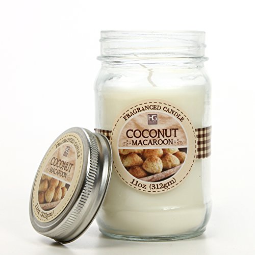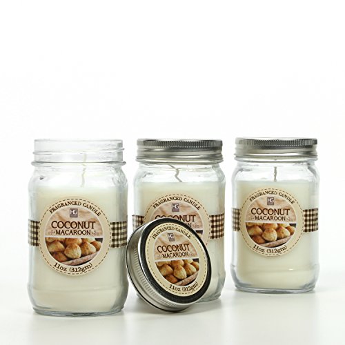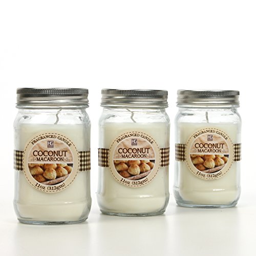 - PRODUCT: Hosley's Set of 3, Coconut Macaroon Scented Mason Jar Candles