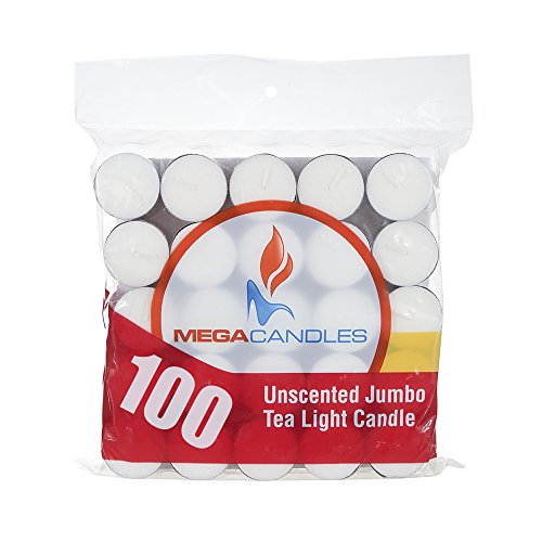 Mega Candles - Unscented Jumbo Large Tea Light Candle - White, Set of 100