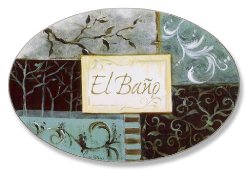 Stupell Home Dark Grey and Aqua Patchwork El Bano Oval Bath Plaque