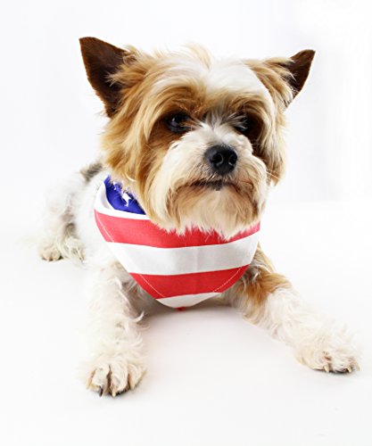 -. Binding : Misc. -. Brand : Midlee -. Feature : Available in two sizes / Bold red, white, and blue American flag print / Triangle bandanna easily ties around any size neck for a custom fit / Rockin' in the USA with this look / Great for 4th of July, Memorial Day, and patriotic pups! -. Label : Midlee -. Manufacturer : Midlee -. PackageQuantity : 1 -. ProductGroup : Pet Products -. ProductTypeName : PET_SUPPLIES -. Publisher : Midlee -. Studio : Midlee -. Title : USA Flag 4th of July Dog Bandana by Midlee