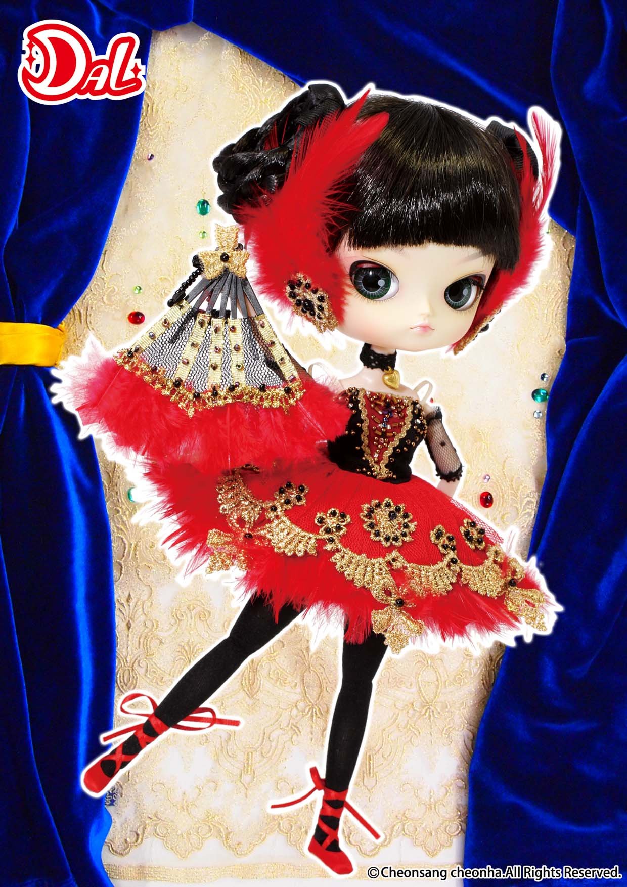 It is a gorgeous design with a golden decoration on the red skirt tutu as a model of the role of the nether "Don Quixote".