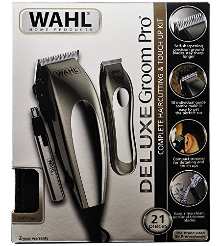 -. Binding : Health and Beauty -. Brand : Wahl -. EAN : 0043917963815 -. Feature : PowerDrive Technology.You'll be amazed at how easy it is to cut hair at home. / Guide combs make it easy to get the perfect cup. / 220V~60Hz Not For North America (2 year warranty) / Self-Sharping High-Carbon Steel Blades. / Includes 10 guide combs for a wide variety of hairstyles and lengths -. IsAdultProduct : 0 -. Label : Wahl -. Manufacturer : Wahl -. MPN : 79305-3618 -. PackageQuantity : 21 -. PartNumber : 79305-3618 -. ProductGroup : Health and Beauty -. ProductTypeName : HEALTH_PERSONAL_CARE -. ProductTypeSubcategory : other-camera-accessories -. Publisher : Wahl -. Studio : Wahl -. Title : WAHL Deluxe Groom Pro 21 Pieces Hair-cutting Kit 220V~60Hz (Not For North America ) 79305-3618 -. UPC : 043917963815