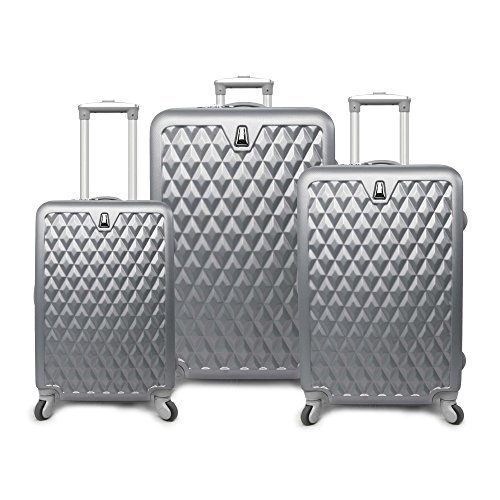Product Description Get yourself this all new travel cases with this metallic diamond design. This is elegant and totally durable to carry your stuff. A great item to have. Set includes: 3 Suitcases; Small, Medium, Large Features: Rolling, Spinner, Hardshell, Lightweight and Durable | Materials: Plastic 0
