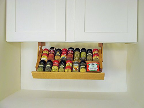 -. Brand : Ultimate Kitchen Storage -. Feature : The beautifully handcrafted Under Cabinet Kitchen Spice Rack easily mounts under upper kitchen cabinets, freeing up valuable counter and cabinet space. / Stores and organizes up to 16 large or 32 small spice containers (spices not included). / Measures 19 1/2 inches wide by 10 inches deep by 2 3/4 inches high. / Attached mounting board and hardware is included, easy to install with step by step instructions. / Made in the USA from the finest hardwood available. -. Label : Ultimate Kitchen Storage -. Manufacturer : Ultimate Kitchen Storage -. Model : SR-01 -. PackageQuantity : 1 -. ProductGroup : Kitchen -. ProductTypeName : KITCHEN -. Publisher : Ultimate Kitchen Storage -. Studio : Ultimate Kitchen Storage -. Title : Ultimate Kitchen Storage Under Cabinet Spice Rack, Handmade Hardwood, Holds 16 Large or 32 Small Spice Containers -. Warranty : 14 day return policy guaranteed from delivery date. Item must be received in new and unused condition.