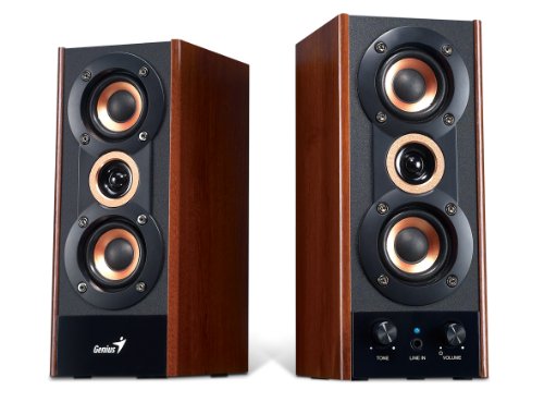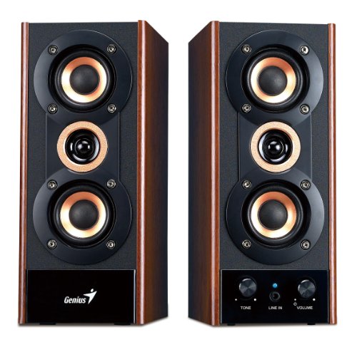 Complete your listening experience with the Genius new classic wood speaker set, SP-HF800A. The 3-way elegant design delivers clear and balanced sound. Total 20-watts output is just perfectly suitable by connecting to iPad, tablet PC, desktop or Notebook. The 2-Inch high-performance speaker units cover the full-spectrum of sound and the one-Inch tweeter gives the SP-HF800A crystal clear treble sound. Not only providing good sound, SP-HF800A is a fine boutique beside your PC with the copper-coated cones and golden-plated ring. For personal sound preference, just adjust the Tone controls. SP-HF800A also has a secondary line-In jack on the front panel for connecting to any playback device with 3.5mm jack without disconnecting the speakers from the PC.Feature