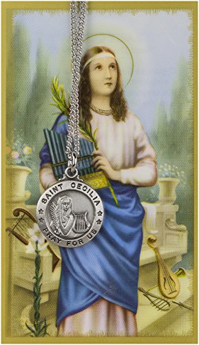 -. Title : Saint Cecilia 3/4-inch Pewter Medal Pendant Necklace with Holy Prayer Card
