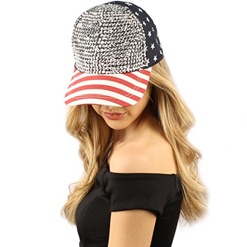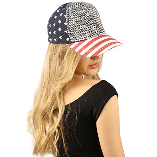 -. Title : SK Hat shop USA Flag Jewel Rhinestone Bling Studs Baseball Ball Cap Sun Hat Adjustable