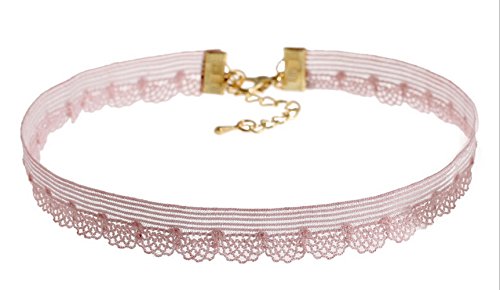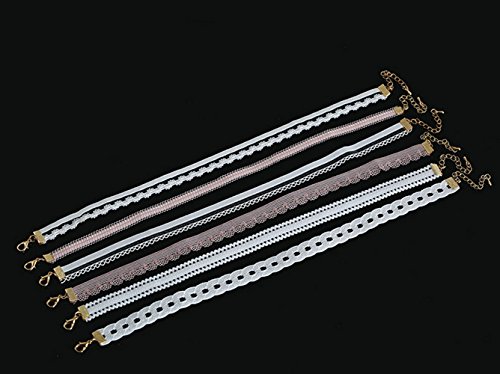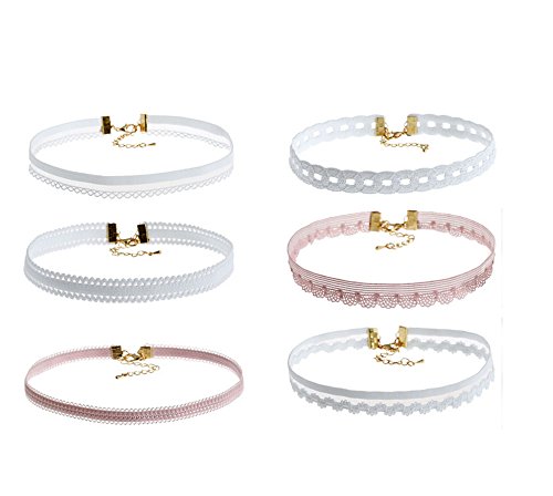 Shapenty Fashion Popular Elastic Stretch Lace Tattoo Necklace Chain Choker for Lady Women Girls, Pink and White, 6 Pieces