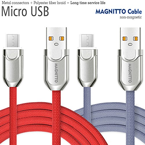 -. Feature : Fast Charging & Syncing: Sync and Charge simultaneously at fast speeds on your Micro USB compatible devices. Save your precious time from the fast pace of life! MAGNITTO Micro-USB charger cable is enhanced with 21 AWG power wires, ensuring safe, high-speed charging up to 2.4 A, and works better for tablets and quick charge devices. / Universal Compatibility - Support most Android Tablets, Cell Phones.Compatible with Samsung Note 4/5, Galaxy S3/S4/S6 Edge S7, HTC, Motorola, Nexus, Nokia, LG, HP, Sony, Blackberry, MP3 and other Micro USB compatible devices. / Strong & Durable Cable: micro USB cable with aluminum alloy nylon braided increases the higher durability and flexibility to prevent against damage to the cable. / Pack of Two (red and blue color cord) - These tangle-free and highly portable Micro-USB cords (1m / 3.3ft) are ideal for a variety of everyday connection needs. / Service and warranty: worry-free 12-month warranty and friendly customer service. If you have any queStions, don't hesitate to contact us!