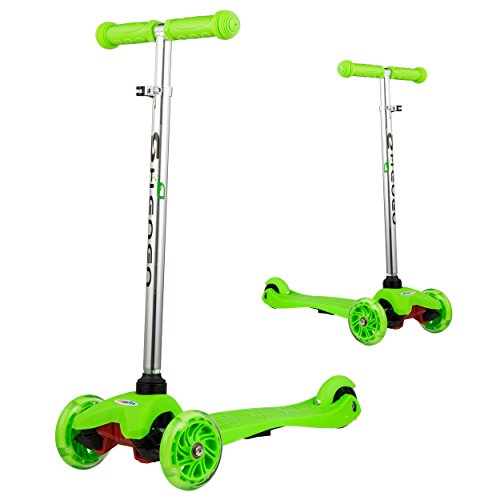 ADJUSTABLE KIDS SCOOTER: This kids kick scooter's handlebars are adjustable, with a simple 3-position latch system that can grow with your child. Adjust the handlebars from 25.5" to 31" tall.