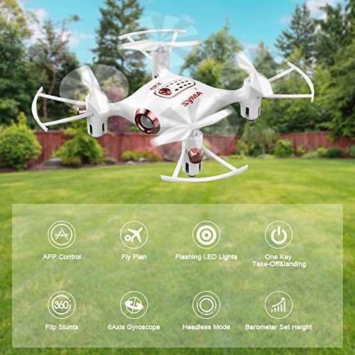 Studio : Syma Publisher : Syma Product Description Description: Syma X20 Mini Drone is the newest drone upgraded with multi features, more stable and more suitable for kids and novice users. Hover / Altitude Hold Mode: Drone altitude specified a flight mode. Beginners easy to manipulate. One Touch Down function is most important to protect the drone when it is out of control or low battery power, the drone will fly down slowly and land on the ground automatically before the motors stopping. Headless Mode makes easier flight: Once the fuselage direction can not be recognized, it can enter headless mode so as to continue the flight. One Key Take-off and Landing function: allow beginner to easy to fly the drone without any skill. One key 360° roll, continuous roll for perfect action and wonderful performance. Designed LED lights are fitted for night flight possibilities, leaving a beautiful landscape in the night sky. Specifications: Model Number: Syma X20 Drone Size: 10.5 x 10.5 x 2.5cm Built-in gyro: 6 Axis Main material: ABS Drone battery: 3.7V 180mAh lipo battery (Built-in) Controller battery: 4 * AAA Battery (not included) Charging time: < 50 minutes Flying time: ≥5 minutes Control distance: 20 meters More Functions: Forward/backward, sideward flight, turn left/right, up/down, altitude hold, one key take off/landing, 360° stunt flip, headless mode, fast/slow speed, etc Notice: 1.Four indicator lights at the bottom start flashing indicate the power is low.Please fly back the drone immediately. 2.Drone assembly under adult supervision 3.Use dry and soft cloth to clean this product and do not immerse this product in water. Package List: 1×Drone 1×Remote Control 1×English User Manual 1×Screwdriver 4×Blades 1×USB Cable 0