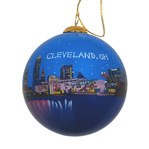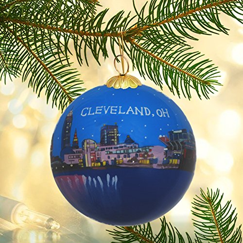 Hand Painted Glass Christmas Ornament - Cleveland, Ohio Skyline Night
