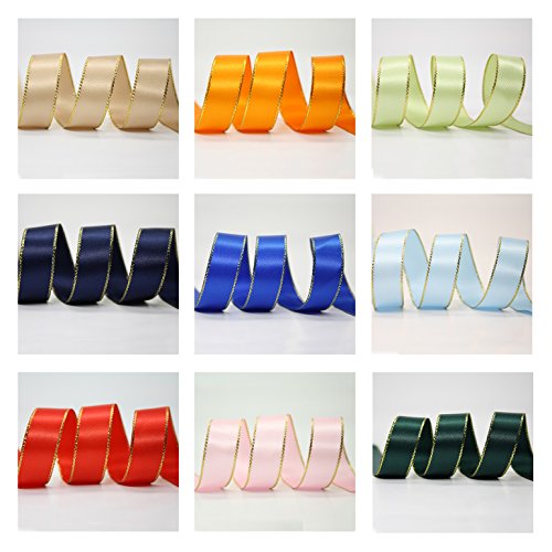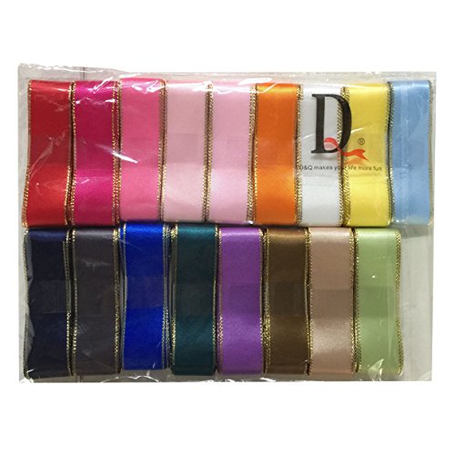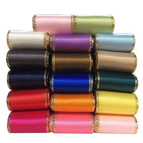 DUOQU 7/8" Double Face Gold Edge Satin Ribbon 34 Yards (2yd x 17 Colors ) Value Pack