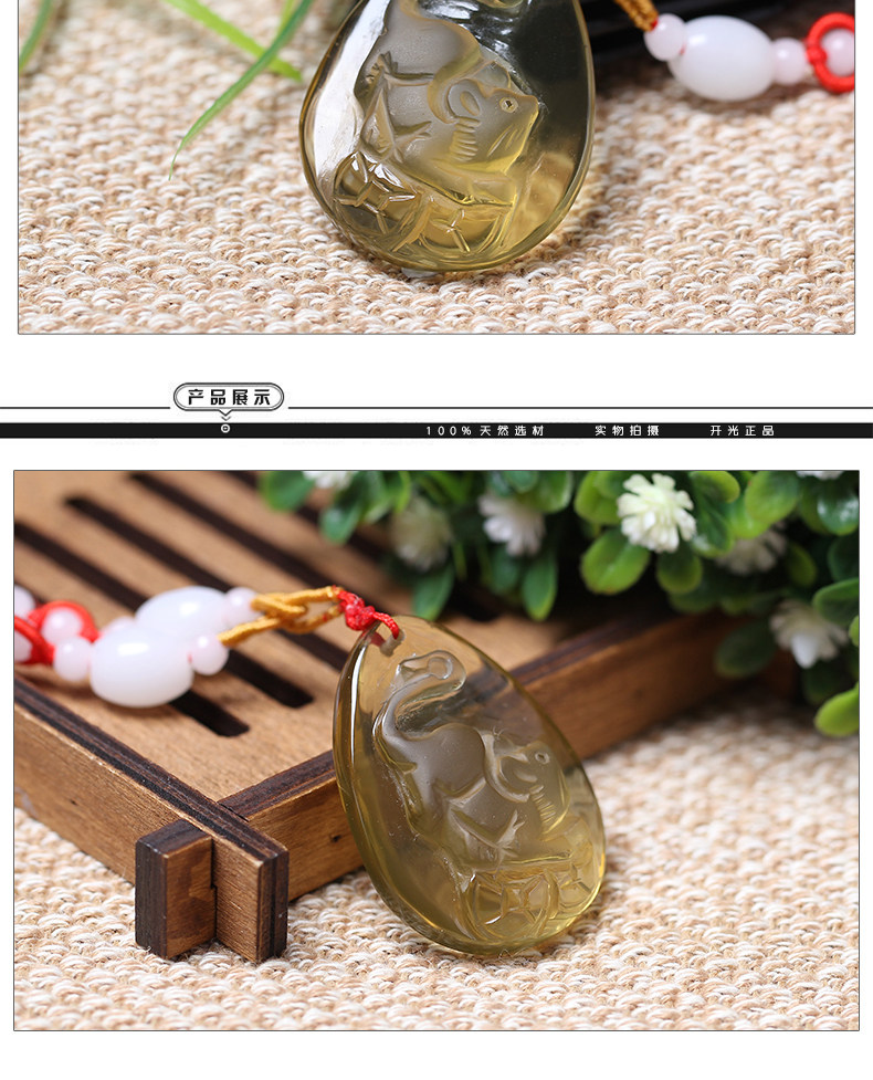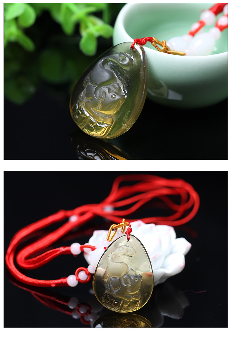 开光天然黄水晶十二生肖鼠吊坠黄水晶莲子送瑞吊坠