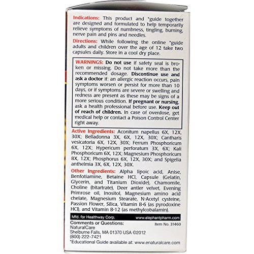 Ingredients: Active Ingredients: Aconitum napellus 6X, 12X, 30X, Belladonna 3X, 6X, 12X, 30X, Cantharis vesicatoria 6X, 12X, 30X, Ferrum phosphoricum 6x, 12x, Hypericum perforatum 3X, 6X, Kali phosphoricum 6X, 12X, Magnesium phosphoricum 8X, 12X, Phosphorus 6X, 12X, 30X, Spigelia anthelmia 3X, 6X, 12X, 30X.