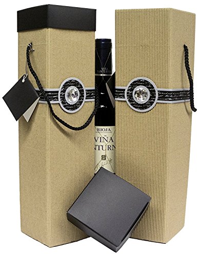 Wine Gift Box - Reusable Caddy - Easy to Assemble - No Glue Required - Gift Tag Included - Corrugated Design with Round Diamond - Sancerre Collection - EZ Wine Gift Box By Endless Art US (Black)