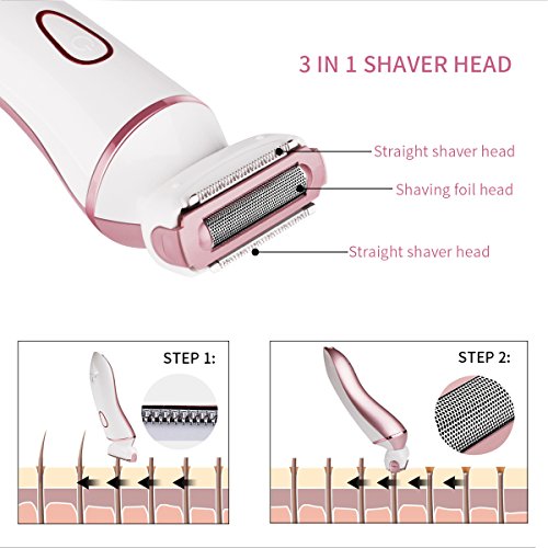 - ❤Multi-Use: 4 in 1 Lady Shaver includes 3 in 1 Shaver Head, Precise Shaver Head, Facial Cleansing Brush Head, Precise Trimmer head will meet all your needs,that can comfortably shave arm, shave face, shave legs, underarms and other body areas.