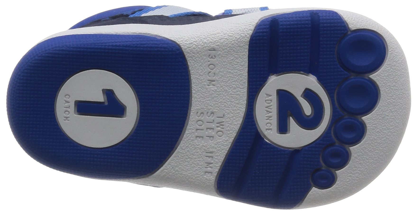 Infants walking is "landing", "kicking out immediately", and two-step.