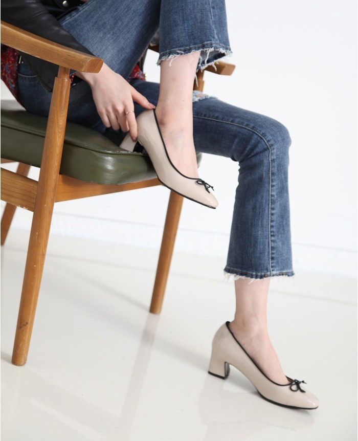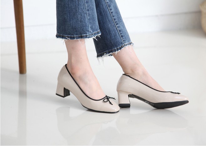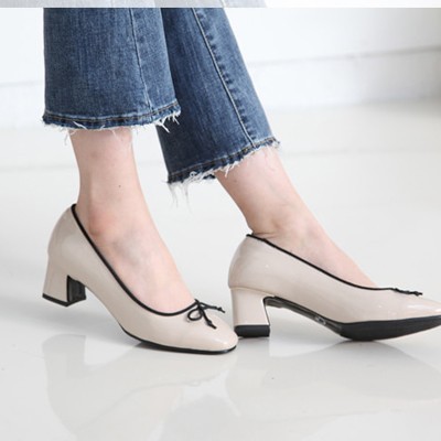 商品名:パンプス レディース チャンキーヒール エナメル調 太ヒール 2018 春 ファッション 靴 婦人靴