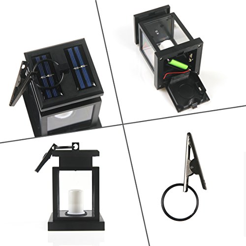 Solar Hanging Umbrella Lantern Solar Lights Outdoor Hanging Solar Candle Lantern Wireless Waterproof Security Night Lights with Auto Sensor & Clip Warm White