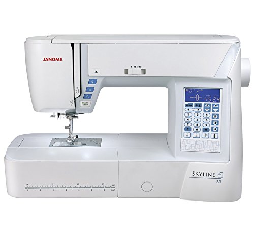 -. Feature : 120 built-in stitches including 10 buttonholes gives you the perfect range of stitches for any task. Special buttonhole settings allow fine adjustments for precise detail / The Skyline S3 offers multiple needle positions. This allows for more detail in decorative stitches, and incredible fine adjustments in all stitch creation. And with 7mm stitch width, this sort of bold detail can be easily appreciated / You can create 7mm wide stitches on your Skyline S3! The extra width makes all of your decorative stitches bolder, brighter, and more distinct. Wider, more distinct stitches allow you to fill more area with stitching, quicker - saving you valuable time while sewing / Ultra-birght LED lights in three locations illuminate the bed of the machine, providing a dazzling work area. Be able to vivdly see your projects and with the extra light, seeing smaller areas is easier / Auto Tension System - When "A" is selected on the tension dial, the machine adjusts the tension based on fabric thickness. Especially useful when switching between fabric layers and types. Allows user to create perfect stitch consistency on a wide range of materials. The user can set his/her own tension traditionally by selecting from the numbers on the tension dial