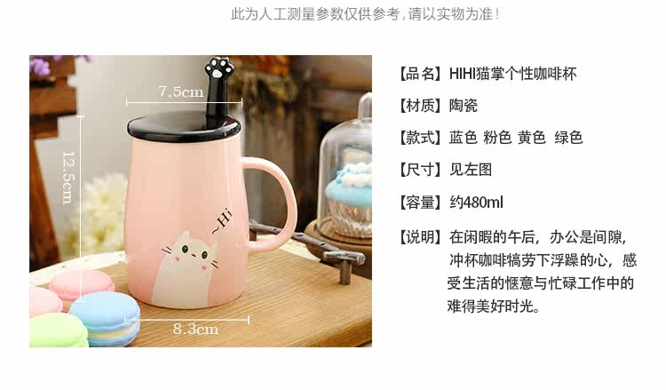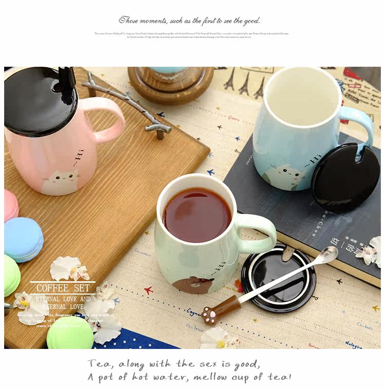 可爱猫个性陶瓷水杯简约马克杯带盖带勺创意情侣咖啡杯办公室杯子