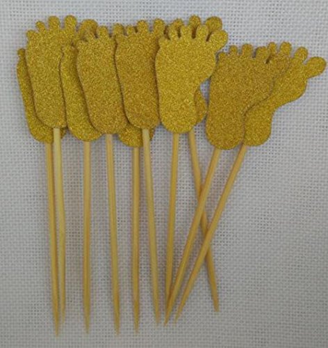 10 Pack Gold Glitter Baby Foot Cupcake Toppers for Baby Kids Birthday Party Baby Shower Decoration