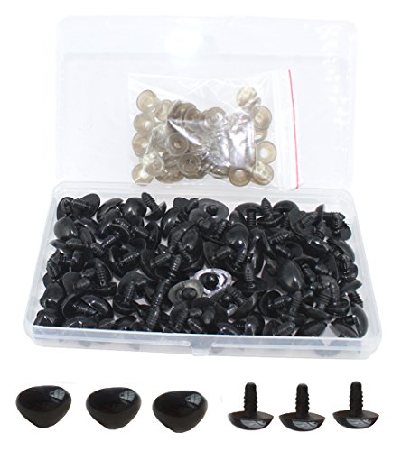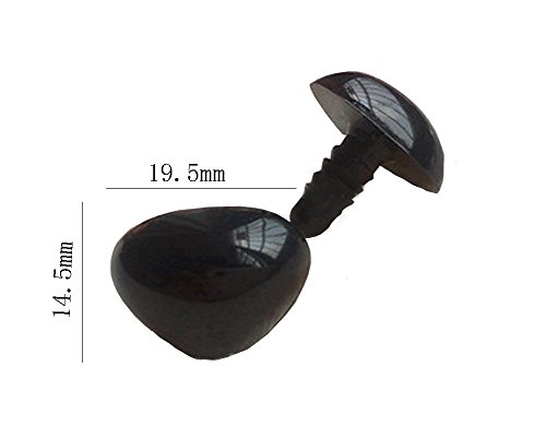BESTCYC 1 Box(50PCS) 19.5mm Black Plastic D-type Animal Safety Nose with Washers for Bear, Doll, Puppet, Plush Animal and Craft